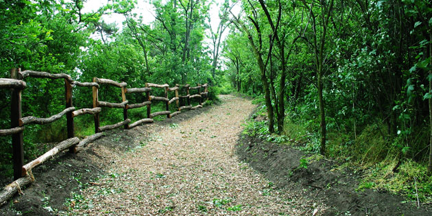 A terület északi oldalán (Balaton felőli oldal) fantasztikus, fákkal benőtt erdősáv nyúlik el, melyben egy sétány húzódik. Ez az erdősáv a Balaton irányából a Siógarden határáig hozzávetőleg tíz-tizenöt métert emelkedik - innen kapta a terület a Magaspart elnevezését is.