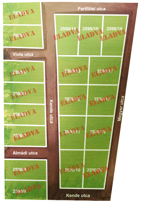 A telekméreteket és árakat tartalmazó telekkiosztás |