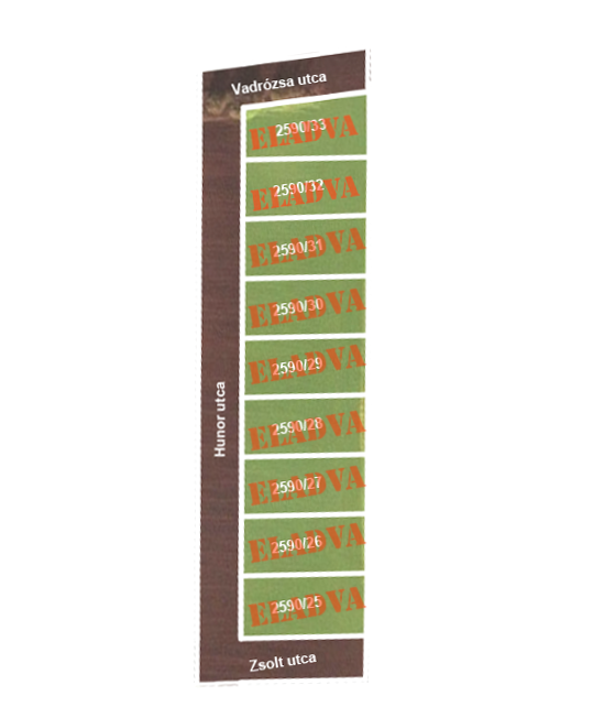 A telekméreteket és árakat tartalmazó telekkiosztás |